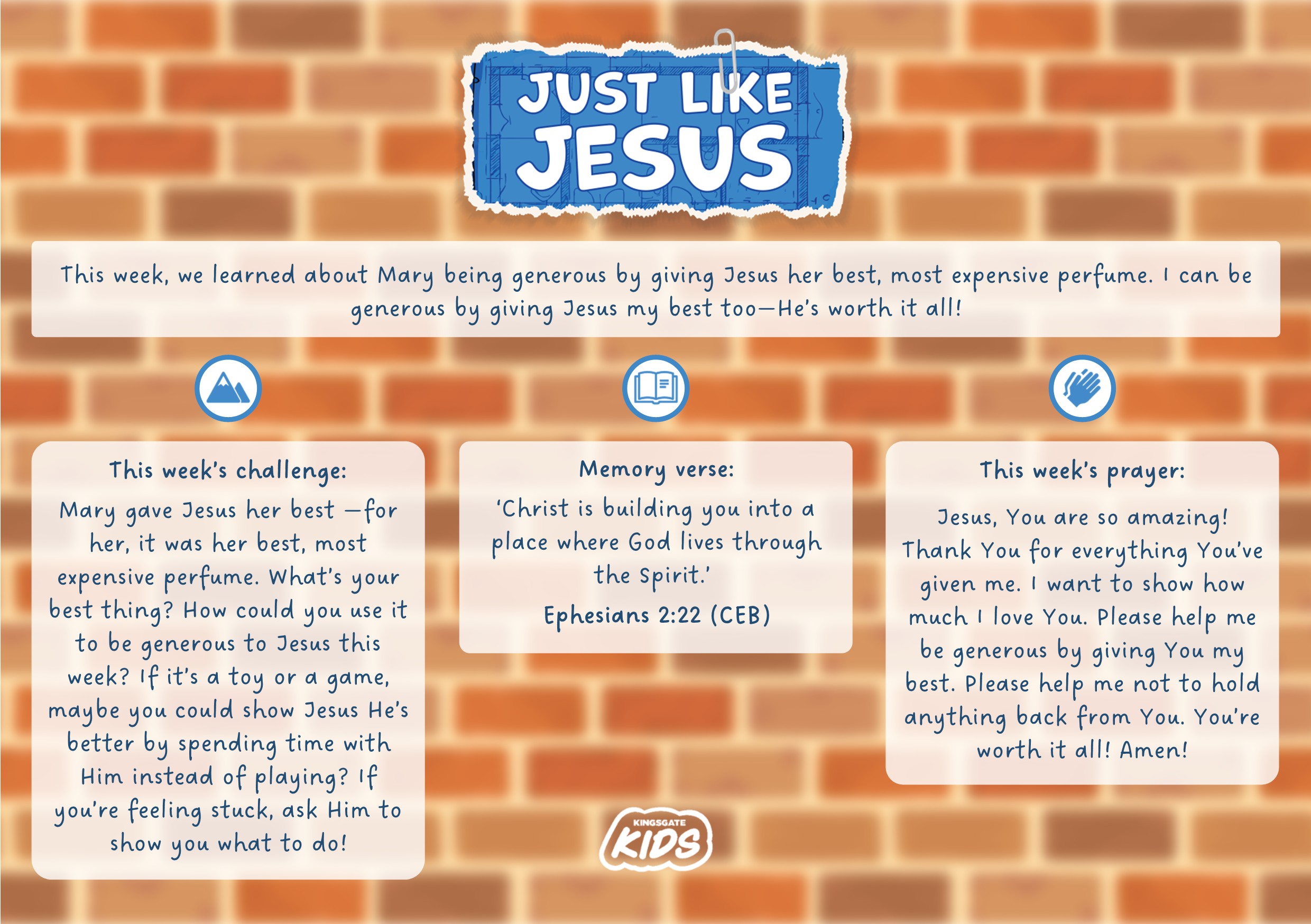 Jesus, You are so amazing! Thank You for everything You’ve given me. I want to show how much I love You. Please help me be generous by giving You my best. Please help me not to hold anything back from You. You’re worth it all! Amen!