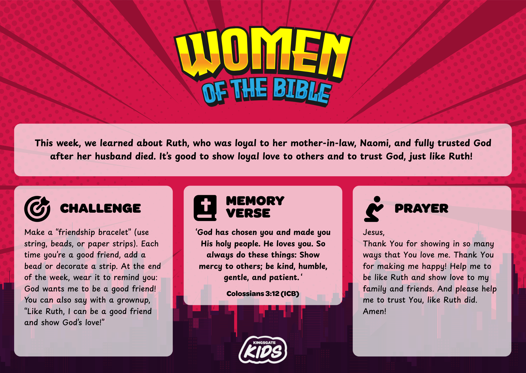 Jesus, thank You for showing in so many ways that You love me. Thank You for making me happy! Help me to be like Ruth and show love to my family and friends. And please help me to trust You, like Ruth did. Amen!