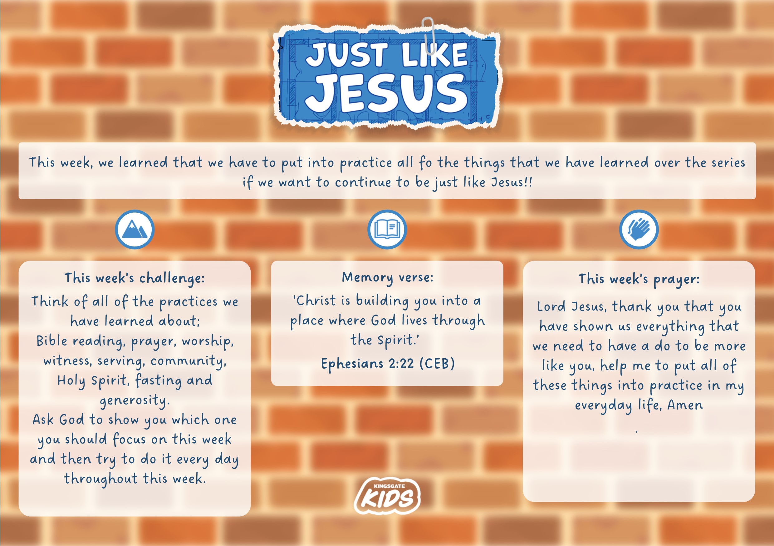 Lord Jesus, thank you that you have shown us everything that we need to do to be more like you, help me to put all of these things into practice in my everyday life, Amen